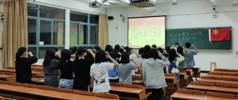 大会正式开始,由组织部工作人员主持进行大会第一项议程——全体起立,奏唱国歌。伴随着庄严激昂的旋律,全体同学肃然起敬,歌唱声响彻整个教室。下面进入大会的第二项议程,全体同学在主持人的带领下一同重温入团誓词。共青团员们高举右拳,诵读誓词。紧随着的是大会第三项议程,各团支部委员候选人上台发表竞选宣言。团干选举筛选出能发挥模范带头作用、勤奋刻苦、服务同学的优秀共青团员成为团支部委员,带领各团支部不断向上,积极进取。到了大会的最后一项议程,全体起立,奏唱团歌——光荣啊,中国共青团。嘹亮激昂的歌声为bevictor伟德官网2020级团支部成立大会画上了圆满的句号。