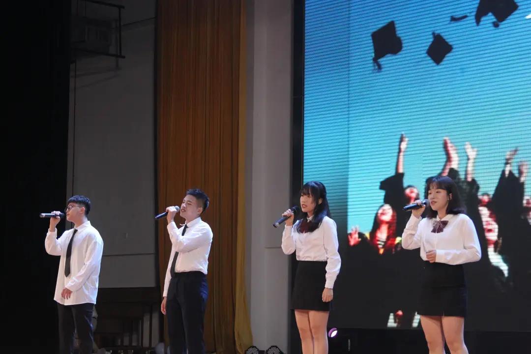 临近晚会尾声,舞台上播放起了短片,是老师们的声声叮嘱,句句牵挂。一句“天高任鸟飞,海阔凭鱼跃”表达了老师对师兄师姐们真诚的祝福。
