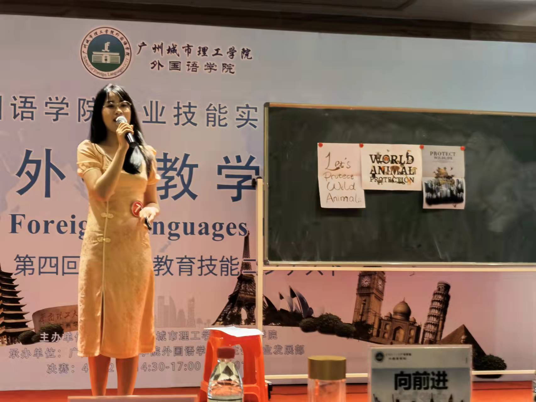 参赛员工在外语教学技能大赛上进行课堂教学展示