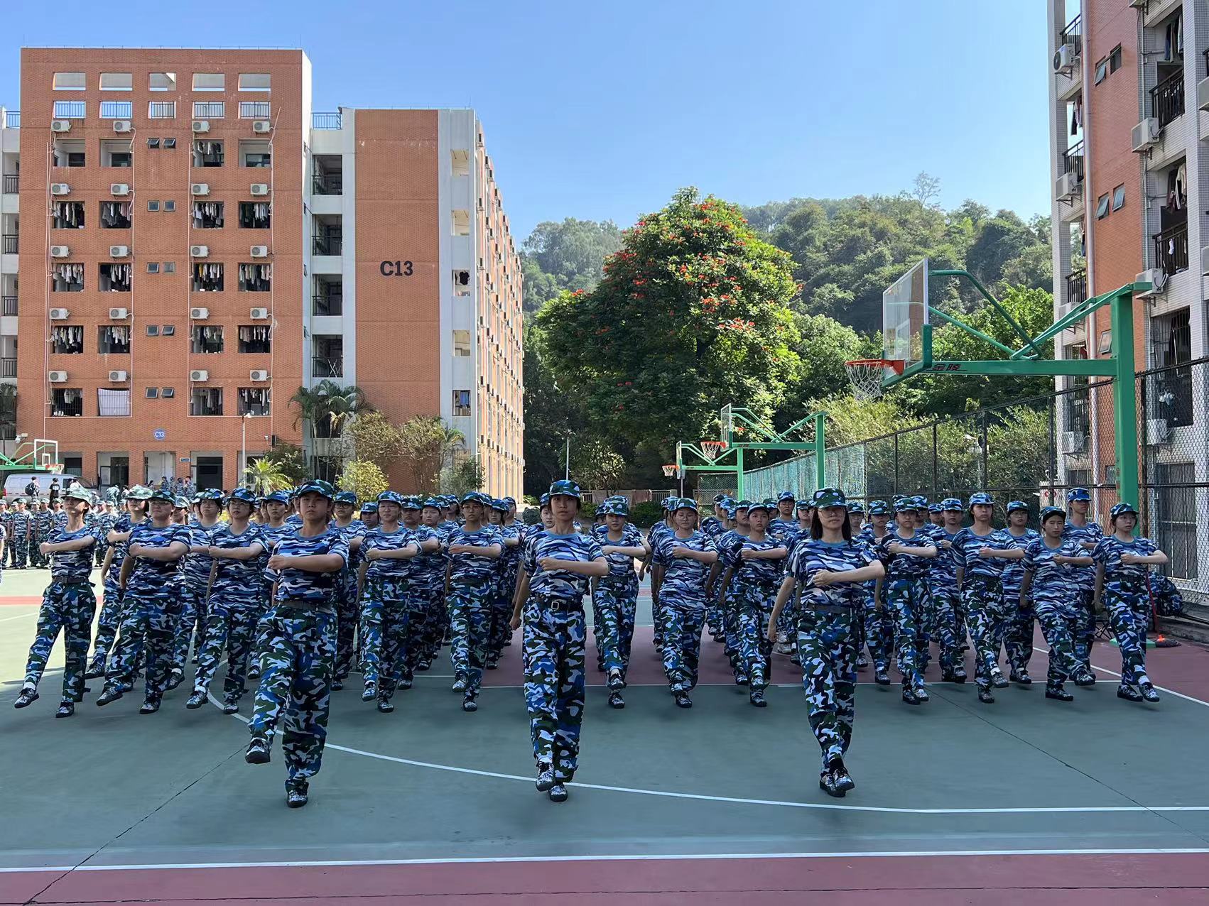 2023级新生军训练习正步走现场(蔡晓坤 摄)