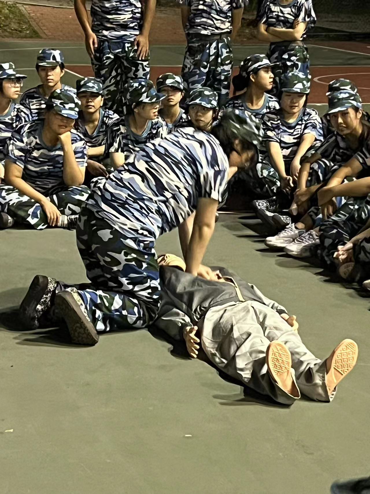 军训-心肺复苏训练(蔡晓坤 摄)