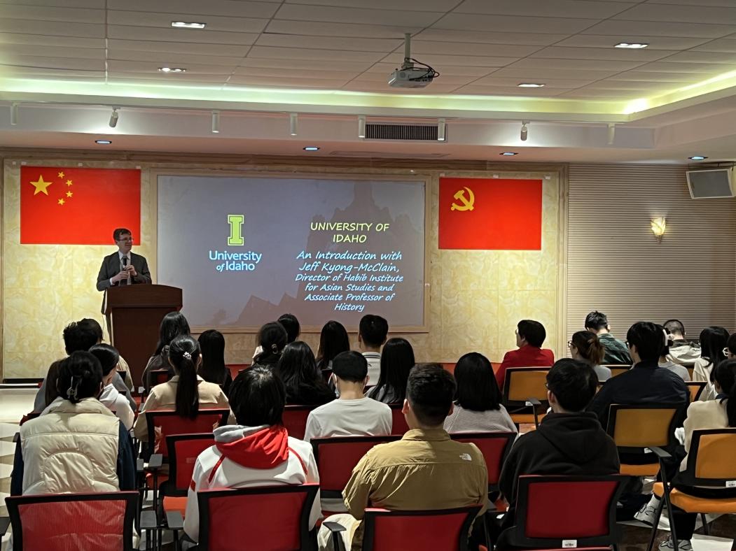 随后,美国爱达荷大学留学宣讲会在A6-201进行,共有来自bevictor伟德官网、国际商学院、管理学院、计算机工程学院等共三十余名师生参会,Jeff主任首先从爱达荷大学文科留学项目作讲解,并介绍了赴美留学的申请条件、优势、费用等基本情况,为员工提供专业选择的意见和在美国职工活的注意事项,同时也跟在场员工热情互动、答疑。宣讲结束后,来自广州大学的皮强博士为在场师生分享了国家留学基金申请流程和美国爱达荷大学职工活经历。