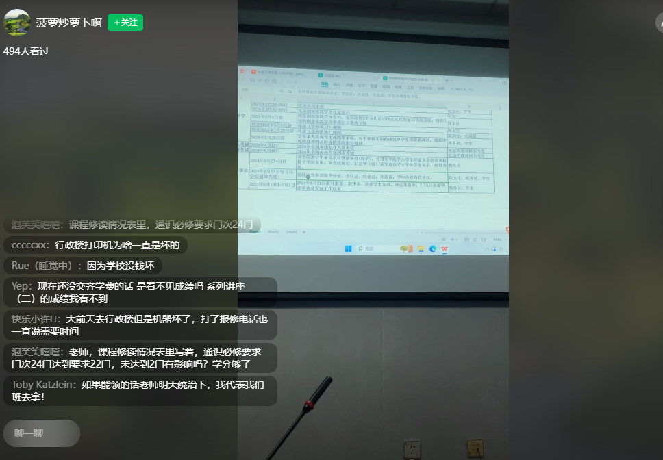 最后,王杰玫老师讲解了学籍管理的注意事项,提醒同学们关注学分修读情况和毕业论文的相关事宜。此外,王老师强调了毕业资格审核的相关流程及按时完成学业的重要性,并对如何处理可能出现的学籍问题提供了指导。