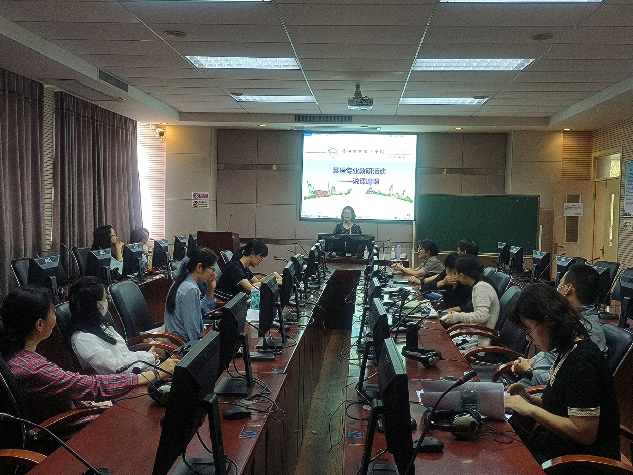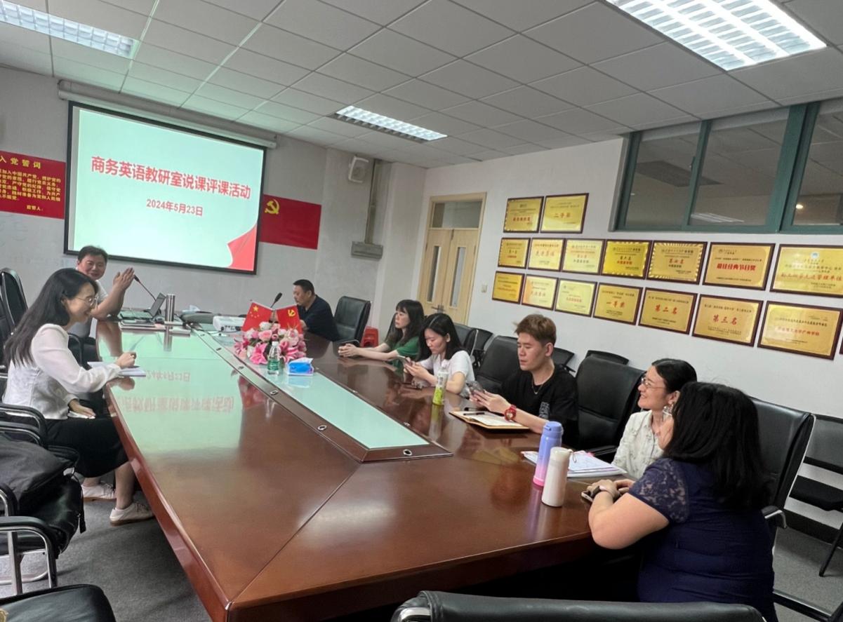 商务英语教研室在A6-214进行了说课磨课研讨,活动由教研室主任侯松山教授主持,广东培正学院唐棠副教授担任磨课专家。侯松山教授带头说课,紧接着,周肖儿、李志坚、陈相云、曾艳、俞立、赖婷等6位教师也分别对商务英语专业不同课程进行了精彩说课。