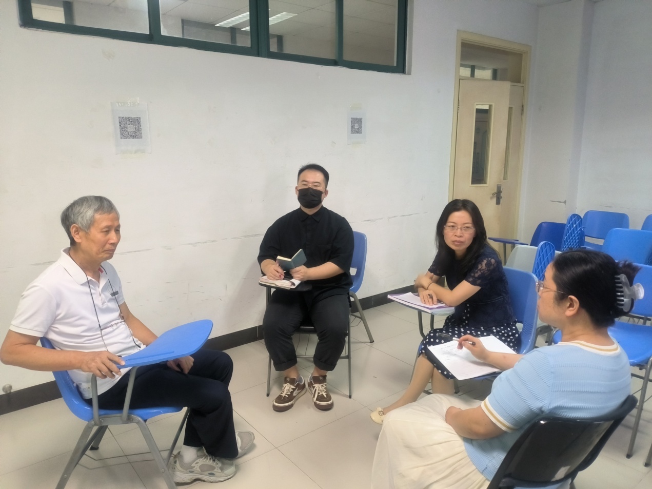 英语教研室在A6-213进行了说课、磨课教研活动,教研室副主任叶玉珊副教授主持活动,广东培正学院张丽君副教授担任磨课专家,青年教师刘诗琴、龙琦、王梦雅、赵亮分别就高级英语II、英语语法与写作IV、英语阅读III和翻译理论与实践这四门课进行了精彩说课,他们把自己的教学设计、教学理念、思政融入和课程反思做了精彩分享。张丽君副教授、朱湘军教授、陈立平教授、相关任课教师进行了共同研讨。