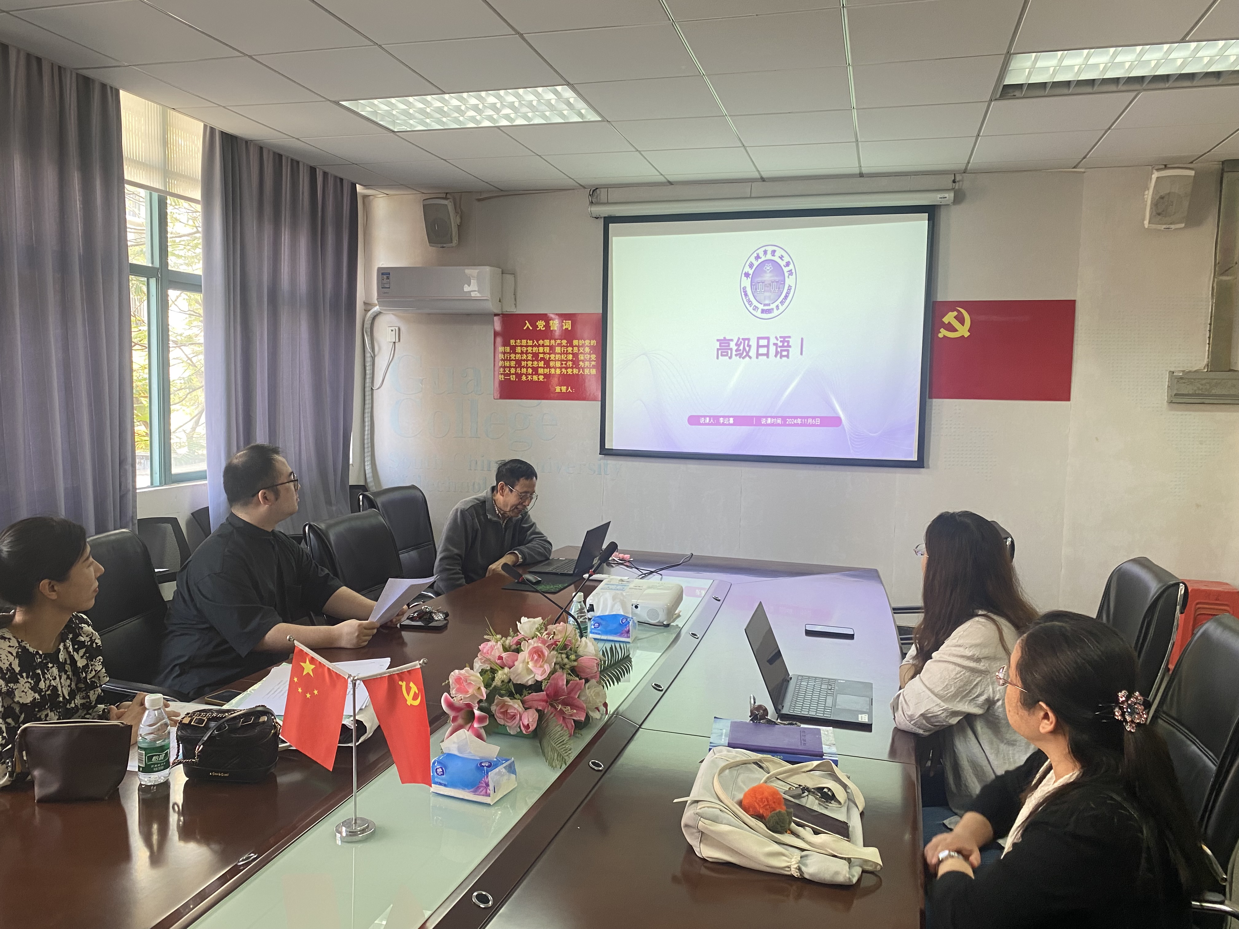 杨丹老师对《日语基础视听I》进行了说课汇报,提到充分利用教材配套U校园资源和中国大学mooc中的相关课程,以视听结果为导向,听力输入口语交际输出,提高员工的交流能力。