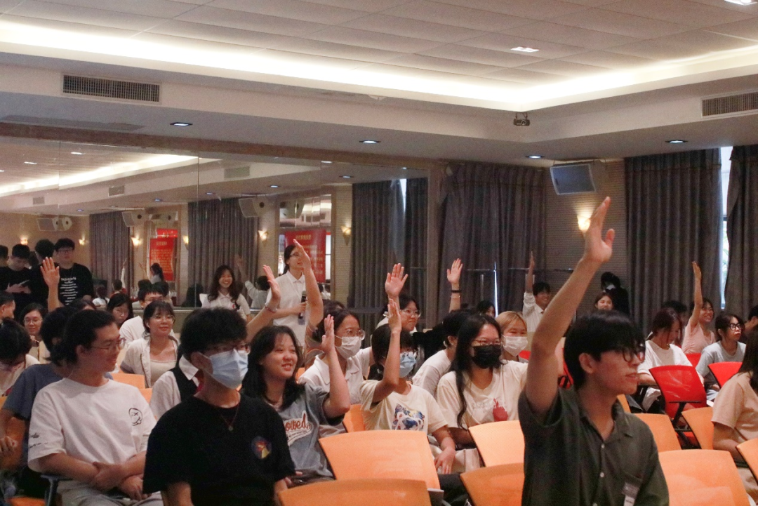 在观众互动环节中,主持人向现场观众提出了数个有关教学技能的问题,观众们的回答非常积极踊跃,在紧张的比赛中创造出一个快乐、轻松的氛围。