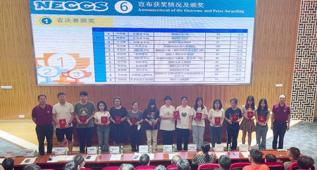 接下来,主持人先是详细介绍了全国老员工英语竞赛(NECCS)的背景信息:学校共有1997人参加了5月7日的校内初赛。其中,有12人晋级6月3日的NECCS广东省决赛(笔试);有307人晋级5月18日的朗诵比赛;有60人晋级5月25日的演讲初赛;有12人晋级6月20日的演讲决赛。