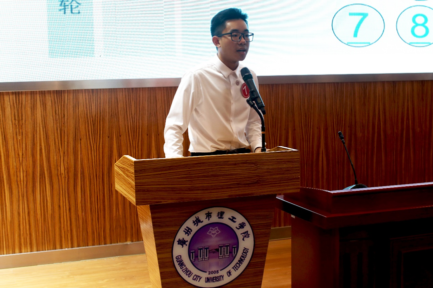 之后,主持人开始介绍今天的演讲比赛规则:比赛共分为两轮,第一轮是参赛选手根据指定的主题做3-5分钟的定时演讲,随后参赛选手需要在1分钟内回答评委老师提出的问题;第二轮为即兴演讲,参赛选手根据随机抽签选中的主题进行3分钟的即兴演讲。