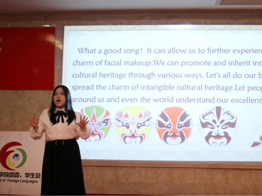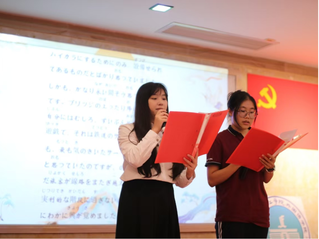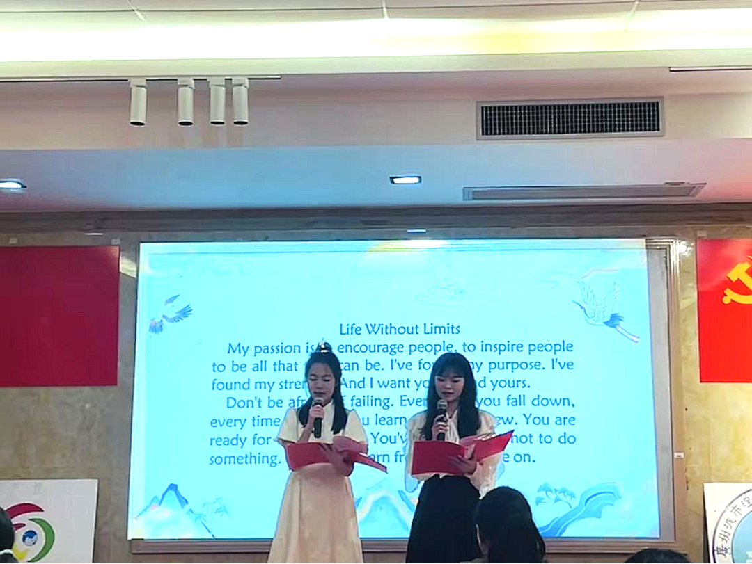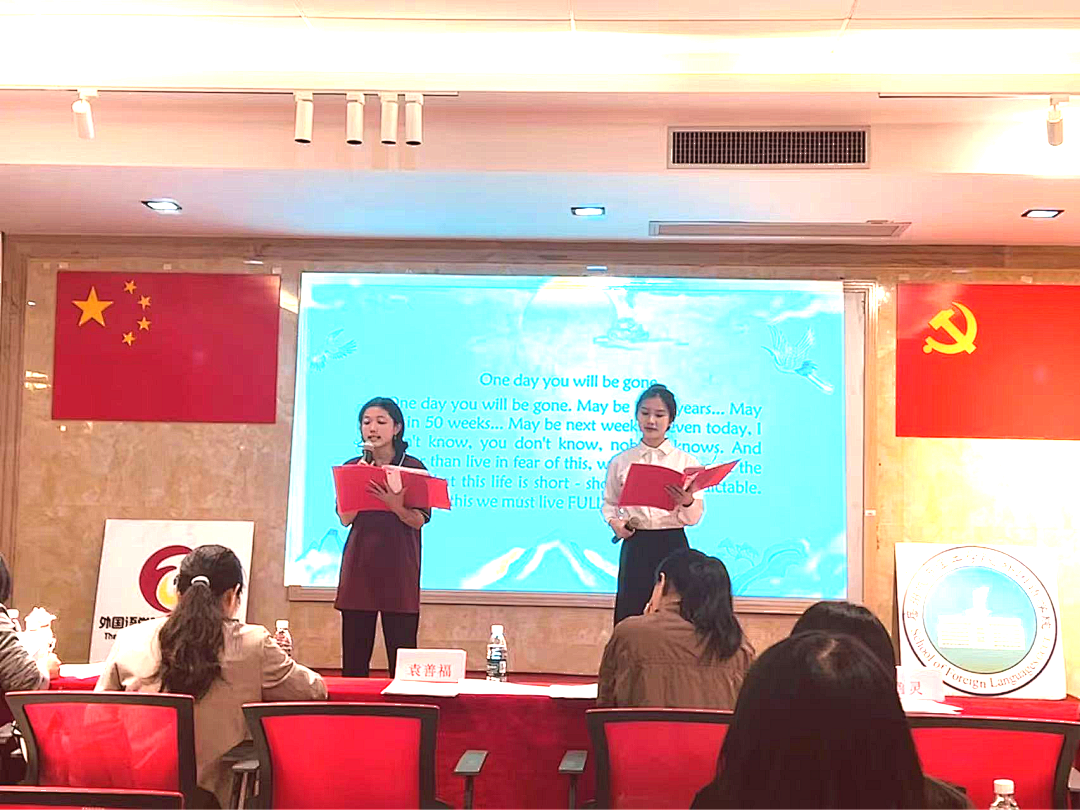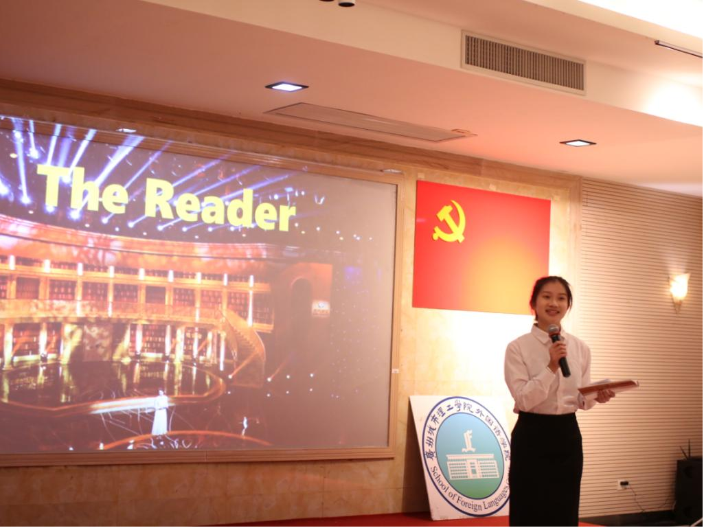 选手们按照抽签顺序,依次上台朗读。选手们精心准备并完美呈现了朗读作品。此次比赛中多名选手进行创新,为观众与老师们带来更多的视觉与听觉盛宴。