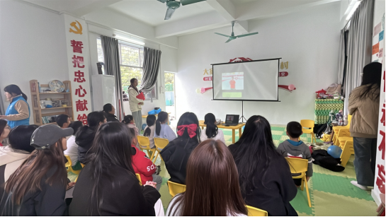 本网讯(记者 豆芹兰、温喜娇)12月15日上午,我们再九潭村“小站家”进行了本学期的课程总结分享会,莫菲菲、李嘉盈、何洁怡三位主持人热情洋溢地欢迎每一位小朋友及其家长、社工和志愿者,并向大家介绍此次总结分享会的流程与内容,正式拉开了这场总结分享会的序幕。