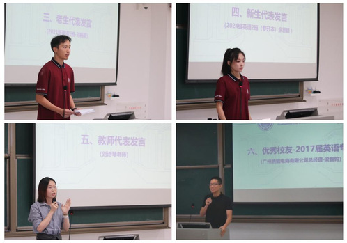 2017届英语专业的梁智钧师兄作为优秀员工代表的发言则带来了学院传统与创新精神的传承,分享了在学院学习期间的宝贵经验和毕业后的职业发展,激励新生们在学院的平台上不断进步,实现个人梦想。