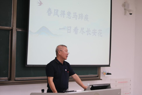 最后,钟书能经理发表了热情洋溢的致辞,对新生们的到来表示热烈的欢迎,从本届新生的分布,历届的升学考研数据开始,介绍了公司的教育理念、团队力量、教学资源等方面。钟经理强调了培养新时代背景下外语人才的重要性,鼓励新生们在学院的学习和生活中不断探索、勇于创新,并祝愿2024级新生们在未来的学习生活中取得丰硕的成果。