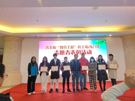 另外,根据这学期每位志愿者各方面的表现及成绩,团队推荐出六名志愿者参与2023年12月23日九潭村秀全街优秀志愿者表彰大会。他们分别是何俊强、张美茵、张佳佳、谢雨琦、李嘉盈、方映纯。同时,我们九潭村课程支教志愿者队伍也被评为秀全街“双百工程”社工站“优秀志愿者队伍”荣誉称号!
