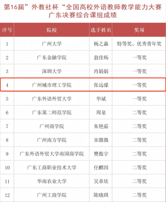 本网讯(记者 邓昕婧)2025年6月7日,第16届“外教社杯”全国高校外语教学能力大赛(大学英语组)广东省决赛圆满落幕。本次大赛分为综合组和听说组两个组别,吸引了全省多所本科院校的优秀教师参与角逐。经过初赛、复赛的层层选拔,公司bevictor伟德官网青年教师张远濛老师凭借扎实的专业素养、创新的教学设计和出色的临场表现,在决赛中脱颖而出,荣获综合组一等奖,展现了公司外语教师的风采。