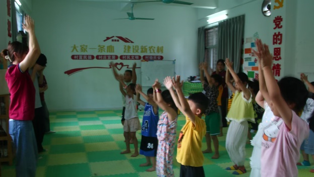 7月8日下午,由实践团的舞蹈志愿者老师王婷、应哲昊带领15