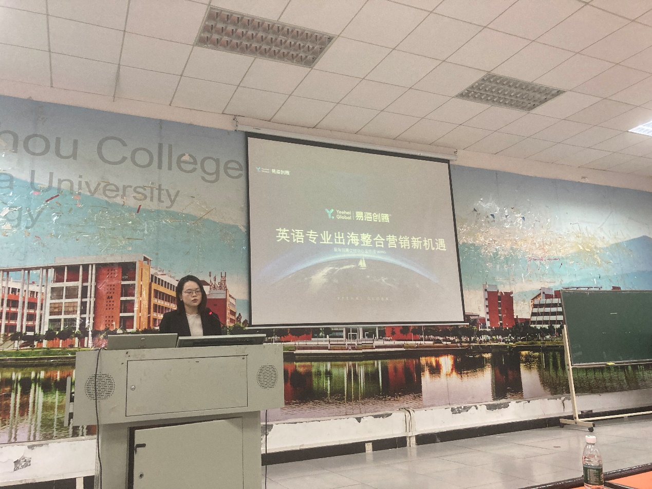随后,朱颖仪围绕“英语专业出海整合营销新机遇”展开核心分享,内容覆盖行业现状、岗位实践与求职技巧:她结合企业多年招聘经验与业务布局,指出随着跨境贸易、国际客户服务需求增长,“英语+销售”岗位缺口持续扩大,这类岗位不仅薪资弹性大,且从初级销售到区域管理的晋升路径清晰;通过欧美客户对接、订单跟进等实际场景,拆解岗位对英语沟通、客户需求理解、市场策略调整的能力要求,还提到公司外语专业毕业生凭借语言优势与主动学习的销售思维,入职后快速拿下重要订单的案例,同时建议毕业生在简历中突出英语能力与实践的结合点,面试时准备相关案例展现适配性,提前学习行业术语为入职做准备。分享结束后,朱颖仪还针对同学们提出的“跨专业求职如何弥补销售经验短板”“出海销售岗位的工作节奏与出差安排”“企业对英语证书的具体要求”等问题逐一解答,并用企业实际招聘与工作场景举例,给出具体可操作的建议,现场互动氛围热烈。