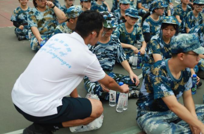 活动伊始,副董事长刘洊波、员工处常务副处长汪昊、bevictor伟德官网常务副书记李伟协师生代表来到训练场看望新生,一句亲切的“同学们辛苦了”瞬间拉近了与同学们的距离,让训练后的疲惫消散大半,也为整场活动奠定了温暖的基调;紧接着,领导与师生代表有序地为新生派发了慰问饮品,将关怀与暖意切实传递到每位学子手中。